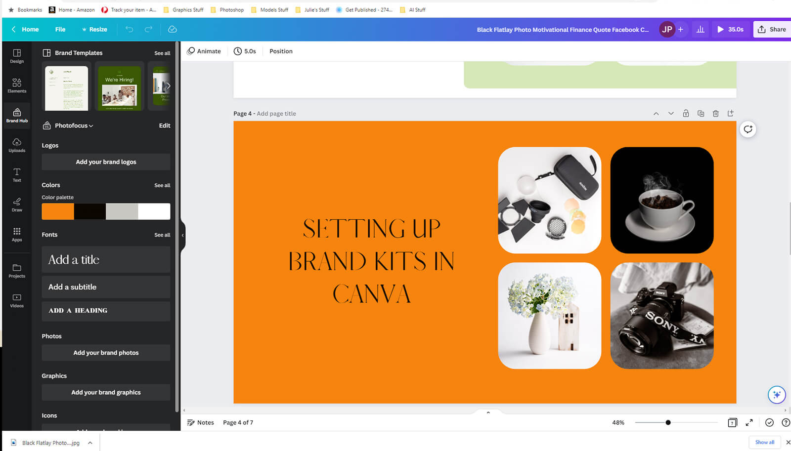 This is the easy part. Create your design from scratch or templates and then select your Brand Kit in the Brand Hub. All of your style settings from logos, colors and fonts will be applied. So easy. It is easier than 1,2,3. Thanks Canva.