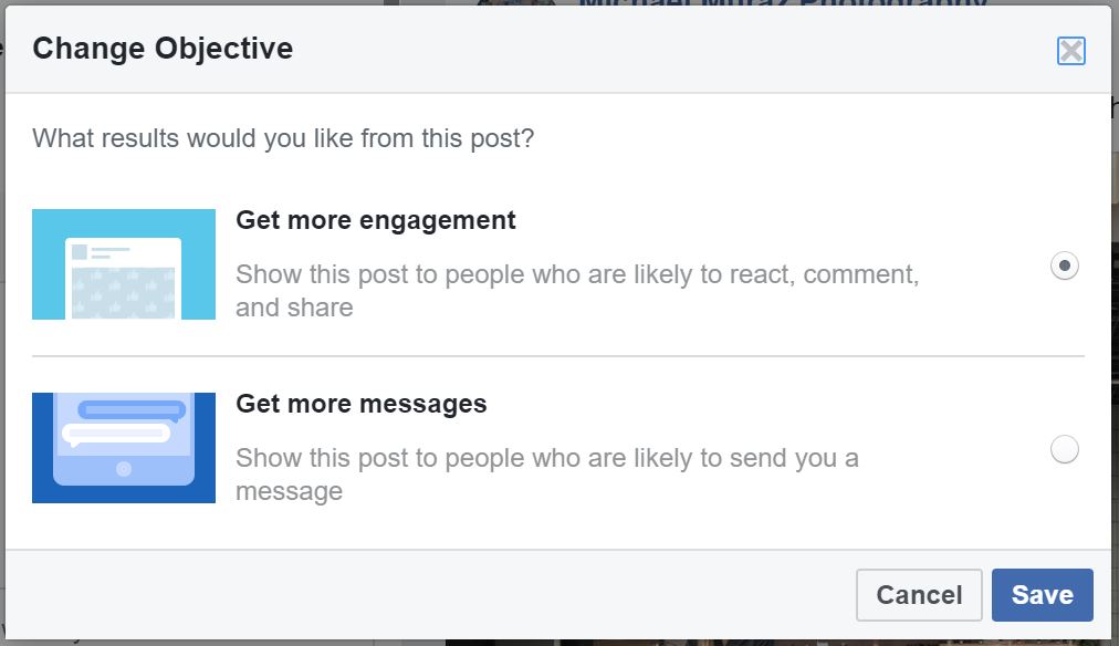 The first setting is the objective of the ad. Here you can pick between getting more engagement and more messages. In the next few articles, you’ll learn how to create custom campaigns that will have more options.