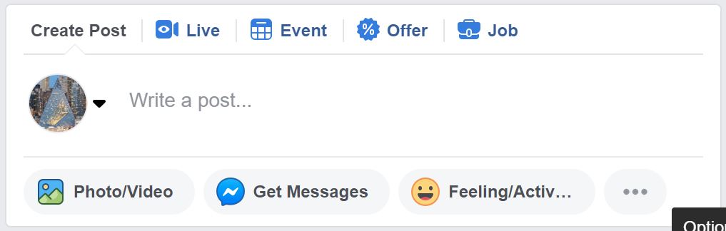 There are two ways to create an offer. First, you can create one directly from your page, in the Create Post box. Select the Offer button.