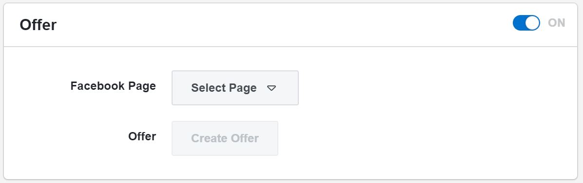 The second way to create an offer is in the Ads Manager when setting up an Ad Set. Just pick which page will the offer be linked to and click on Create Offer.