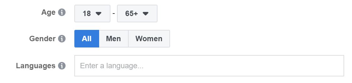 Then we get to the demographics. You can pick an age range, specify gender and include only people who speak specific languages.