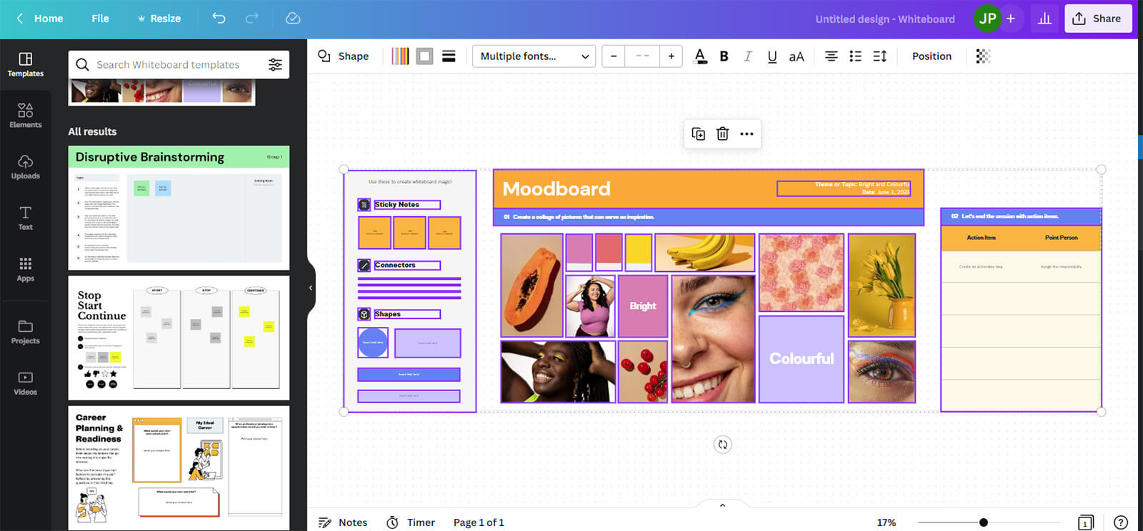 In addition to all that, you can share documents, virtual whiteboards and mind maps, make presentations and videos and even design print products. Create mood boards. Looking for a website for your portfolio? Yes, you guessed it you can do that in Canva too. There are thousands of templates and you can create your own.