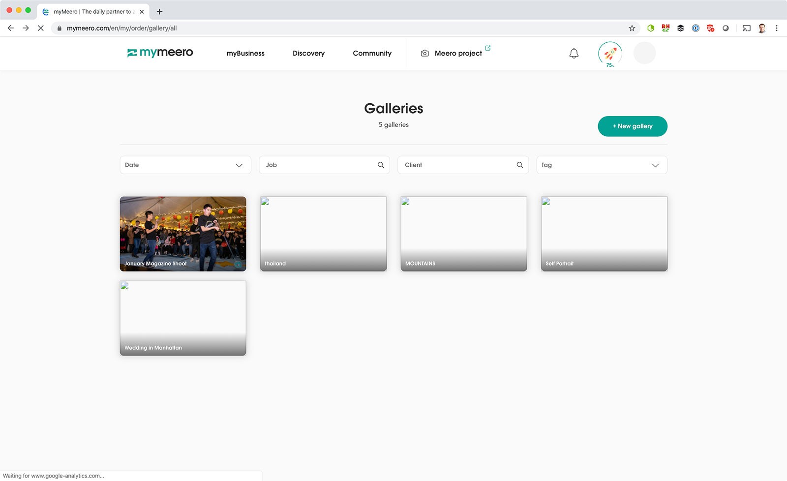 Please note that the screenshot above was from a preproduction demo of Meero, and the blank demo galleries were created before cover photos were supported.