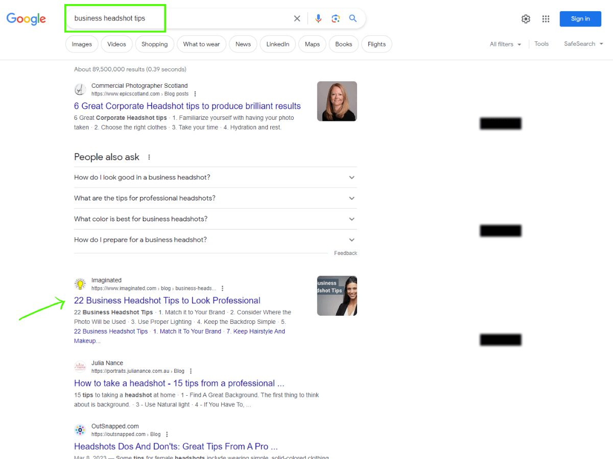 Moving on to H2s and H3s: this is where your secondary keywords come into the picture. These are the support crew for your main keyword. For example, if your primary keyword is “new york portrait photographer,” your secondary ones might include variations like “new york fashion portrait photographer,” “new york portrait photography,” and so on. Each photographer will have different secondary keywords that gel best with their style. To really nail down which keywords are perfect for you, it’s all about tailoring them to fit your business goals which I can help with.