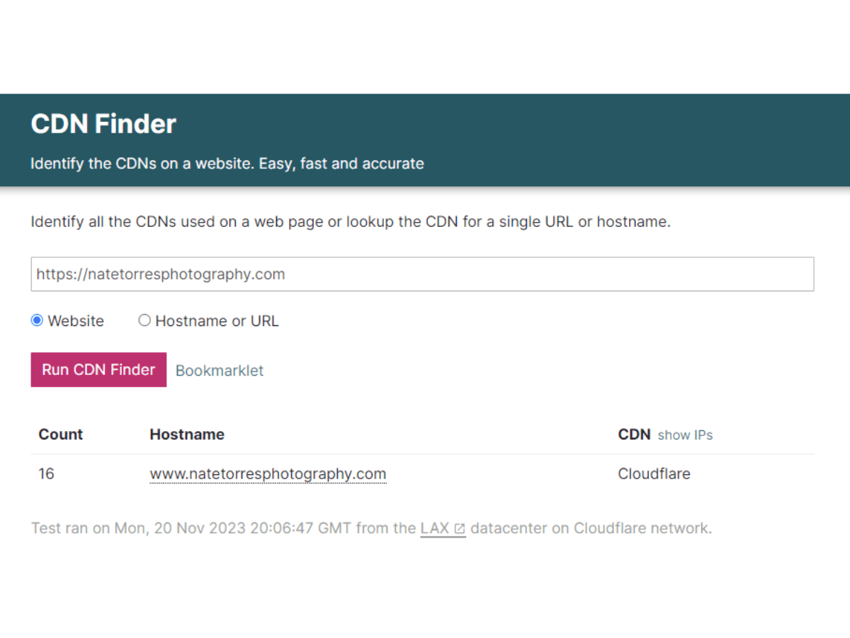 Wondering if your website is already using a CDN? You can easily check this with a CDN Checker Tool. For example, when I checked my site, it showed that I’m utilizing Cloudflare’s CDN: