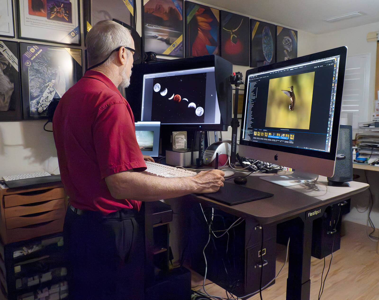 Gotta love a tool that makes your body feel better after using it. Following my use of the standing/sitting desk i no longer have backaches when I’ve got to spend a long time doing post-production or judging images via Zoom. If I start to get a little uncomfortable, I push a button and my desk moves to a standing position. Getting a little tired there? You got it. Push the sitting position button and I’m back there. If I want a slightly different position that’s a piece of cake as well. Who knew working at your desk could be so fun??