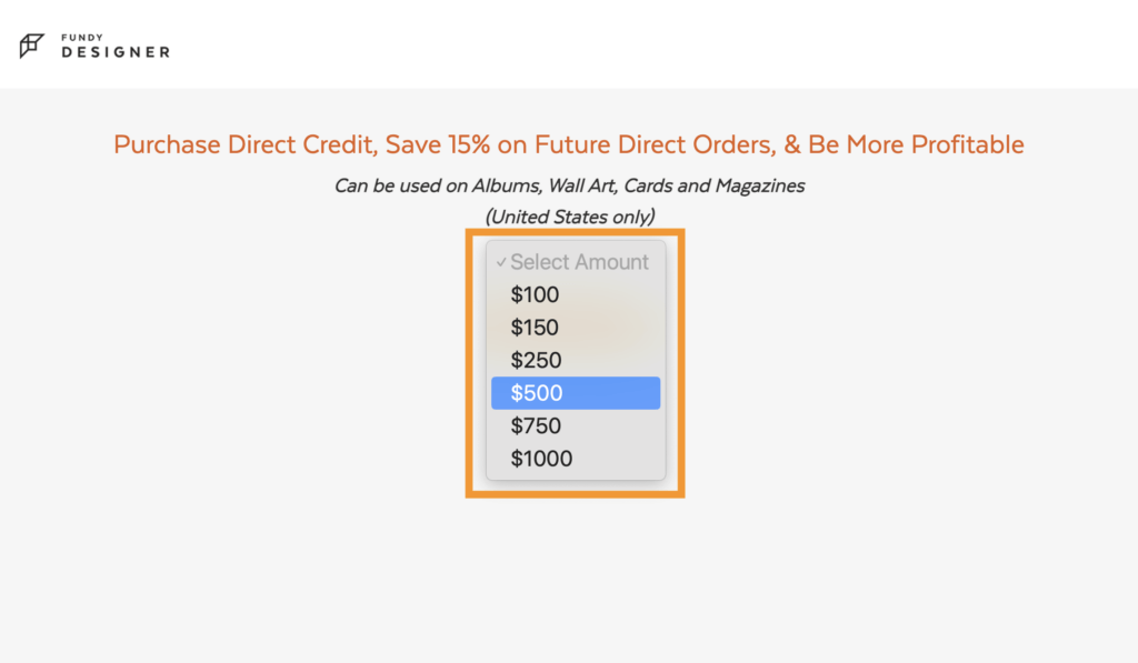 For example, if a client pays you $1,000 for prints, you could use that deposit to pre-purchase Fundy Direct Credit. Instead of only getting $1,000 worth of prints, you now have $1,150 in print value—without spending an extra dime.