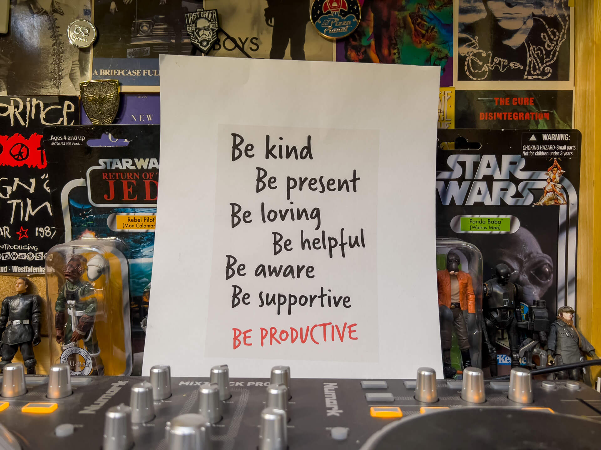 In closing, I’ll leave you with the mantra I wrote myself in week three of this pandemic. I look at this sign every morning.