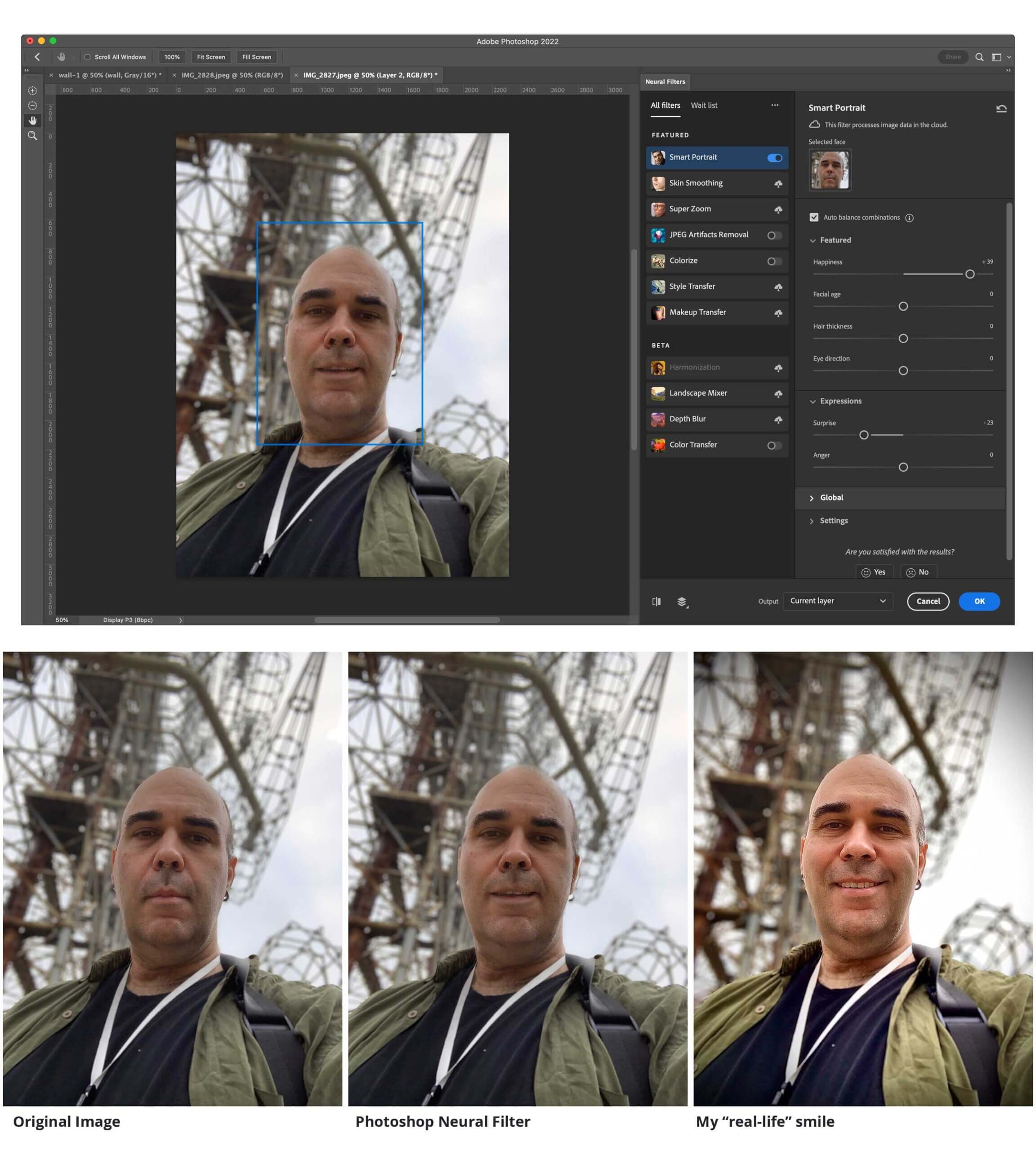 We saw this a few years ago with Photoshop’s Neural Filters. It had the ability to modify a photo and add a smile with teeth to an image that didn’t have one. Except, the AI doesn’t know if that person has braces, a chipped tooth or drinks too much coffee like me.