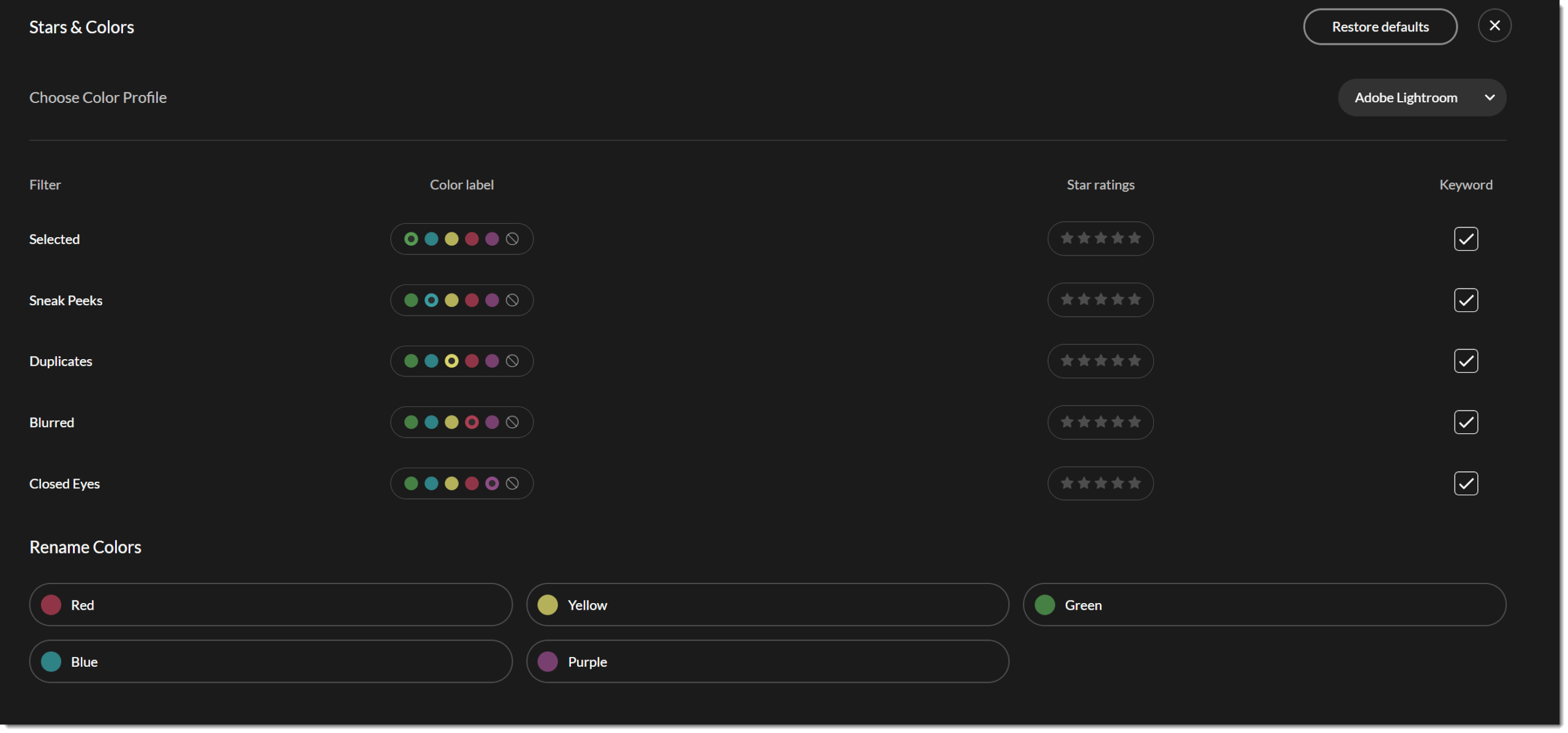 Once it has worked its AI magic, your images will be sorted by color and/or star rating. The images will be sorted into groups that contain your best images, images with soft focus, images where the subject’s eyes are closed and first look photos for weddings.