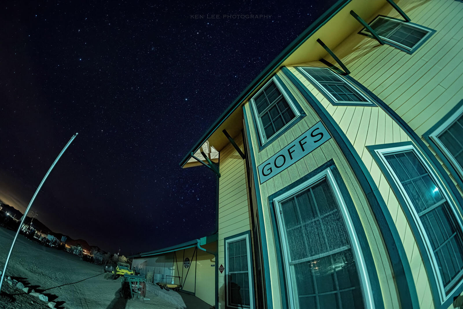 Goffs is located south of Mojave Road at an old alignment of Route 66 in a dark sky area about half an hour west of Needles, CA. It’s far from Las Vegas or Los Angeles and is surrounded by the Mojave National Preserve. As you might guess, Goffs has dark skies.