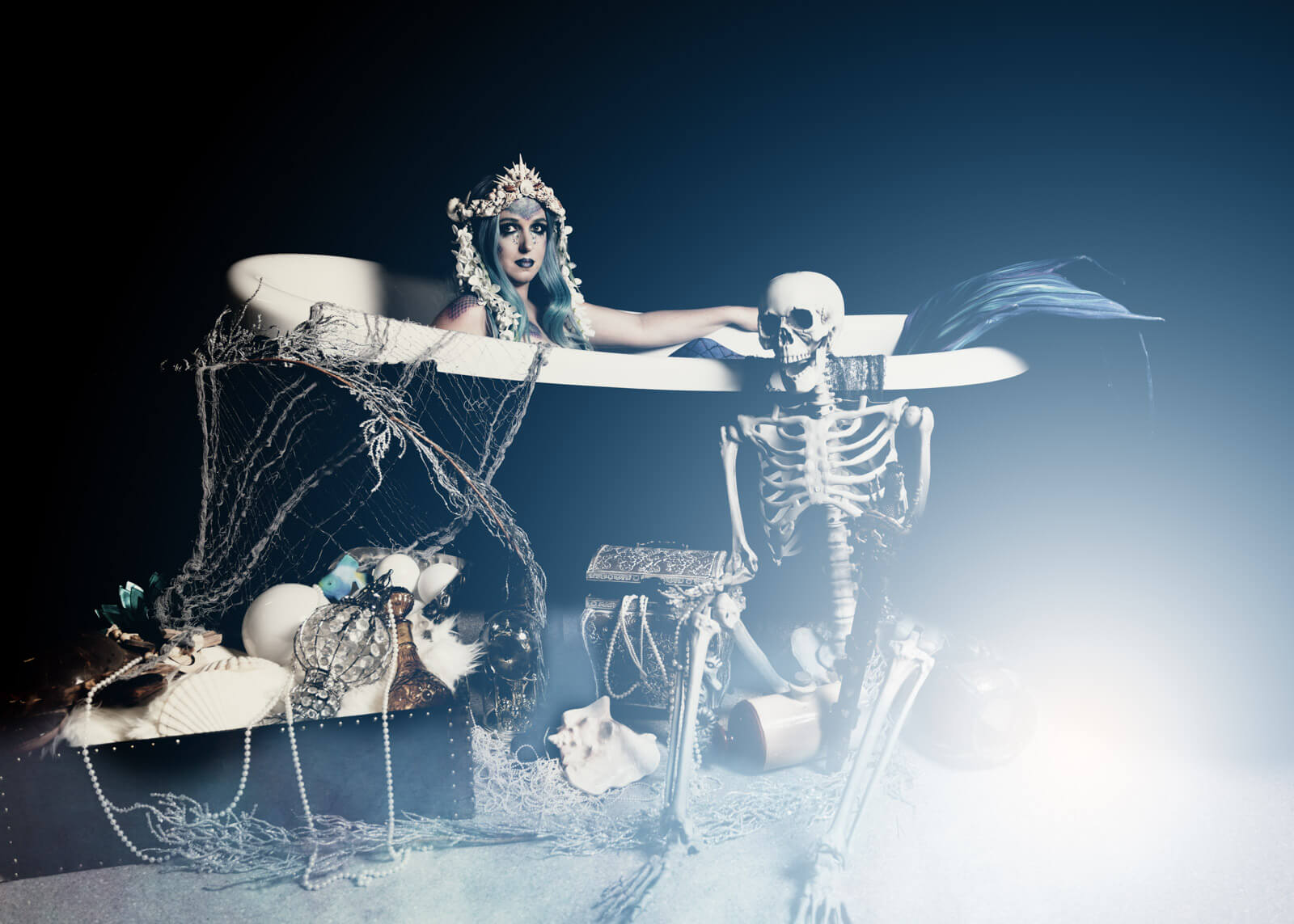 So far this year I have managed to shoot four collaborations so far, and most have been fairly elaborate too. Sirens was by far the most labor-intensive as far as traveling to Country Victoria to shoot at Studio Sue (Sue Masterson) for the bathtub and chandelier. Setting up the ‘siren’s lair’ took several hours. The makeup took several hours. The shoot went for hours. Want to see the whole gallery? Check it out here
