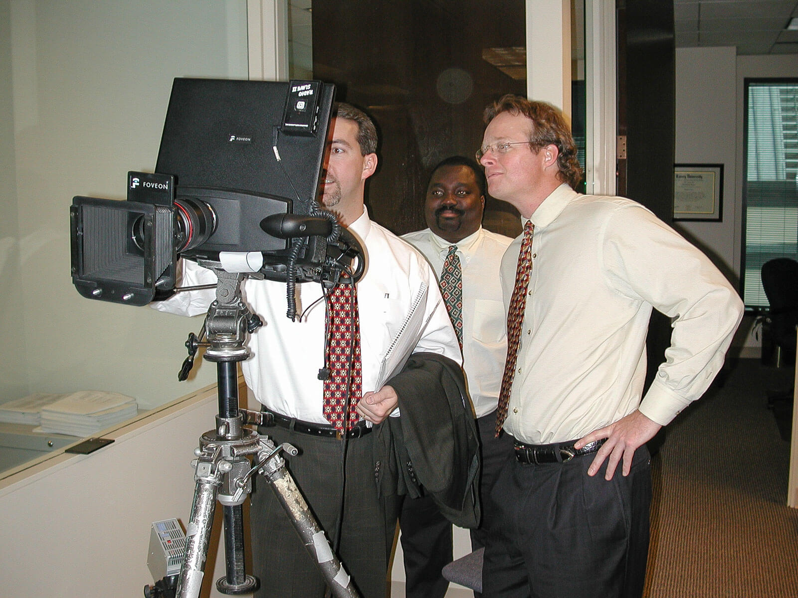 My first professional full-color portrait camera was the Foveon Studio Camera. It was a three-chip on a prism that used a Windows laptop for the viewfinder and the finished photo side-by-side. I loved that camera and it was mirrorless.