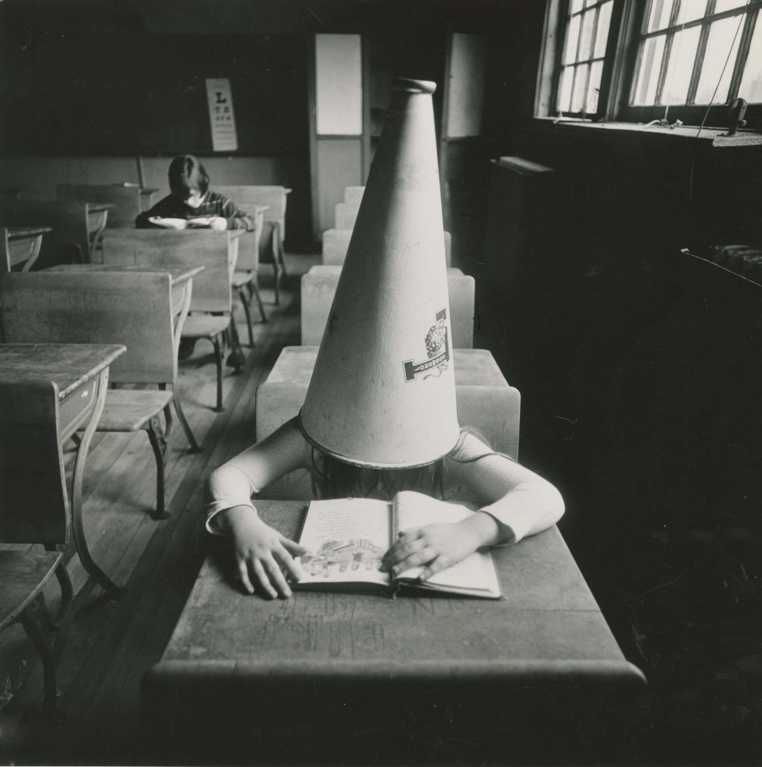However, Tress also mentioned doing workshops in schools. There, he brought a Polaroid camera and asked the kids in the classroom to act out their dreams. They also made a little book with the photos. During one of these sessions, he took yet another memorable and impactful photo that proved perfect for the project.