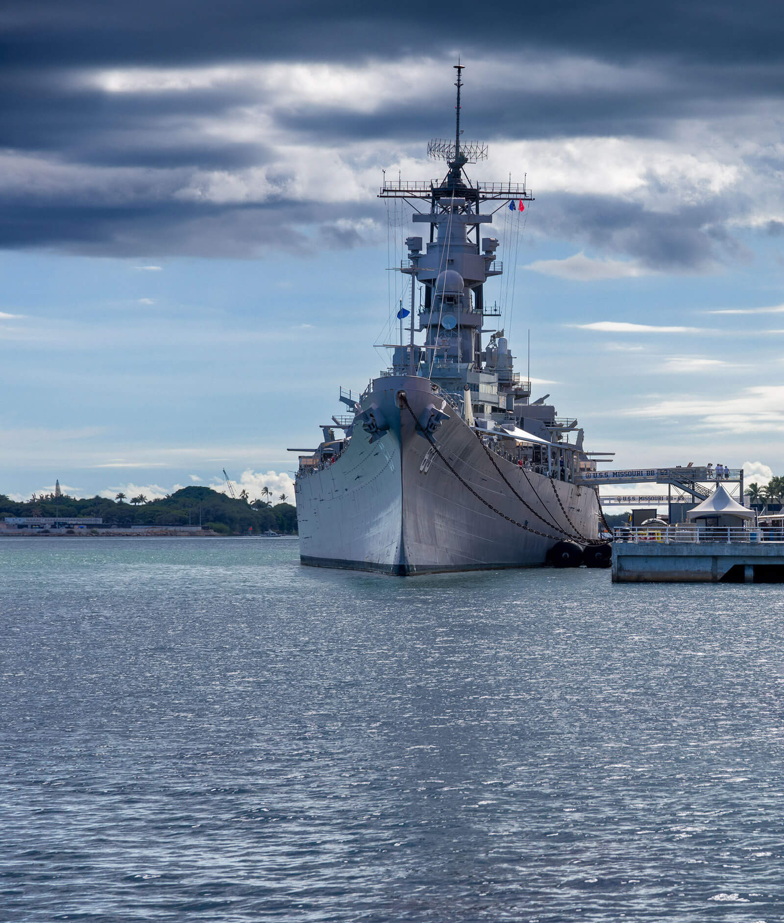 I looked across where the bow of the Arizona lay underwater and saw the USS Missouri — the “Mighty Mo” — commissioned in 1944. She served in the Pacific through the rest of World War II and in Korea and the Gulf War.