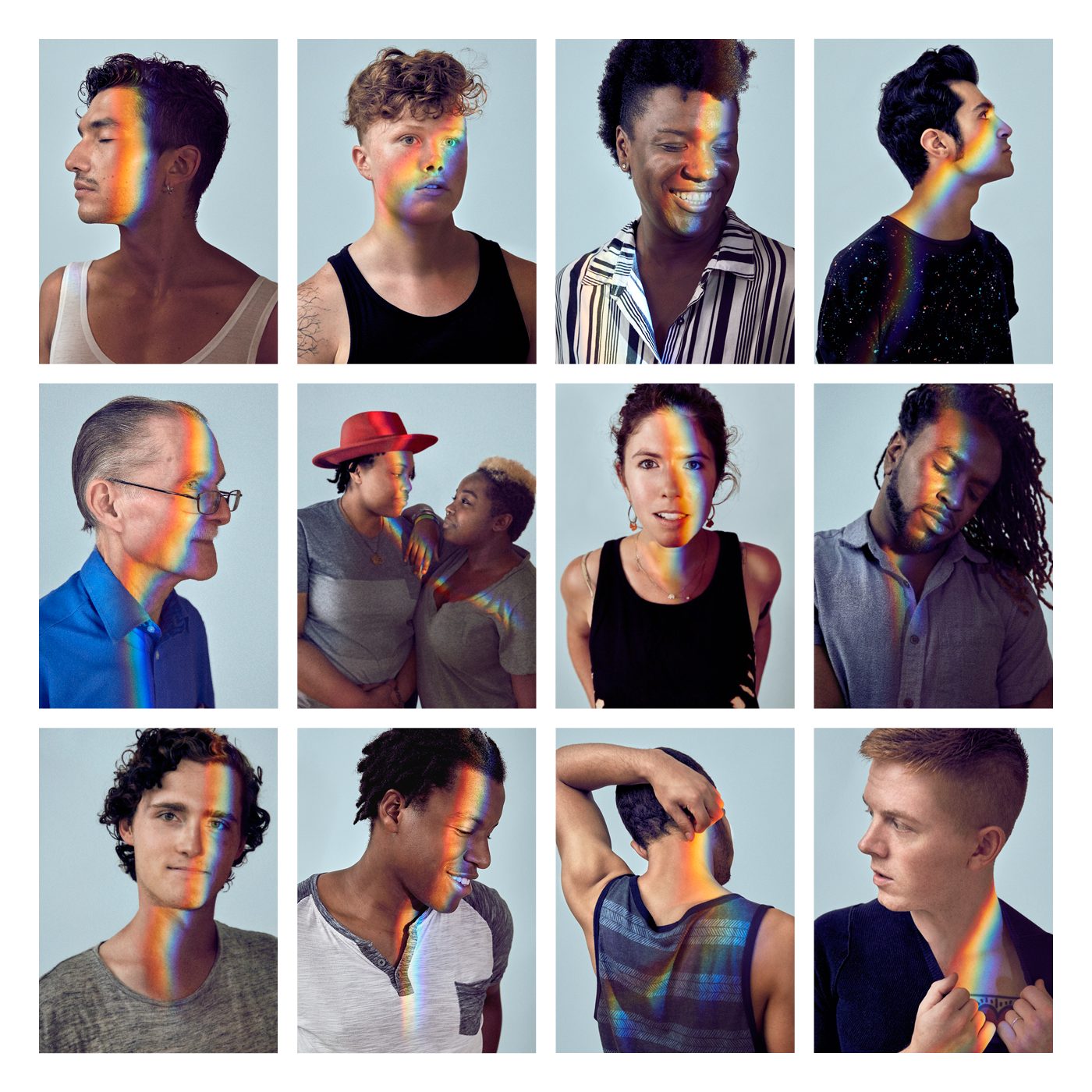 The photography itself was also minimalist, being simple portraits that effectively communicate the campaign message. The plain, light-colored background makes the subjects pop a bit, but still complements the signature rainbow colors of the LGBTQ movement.