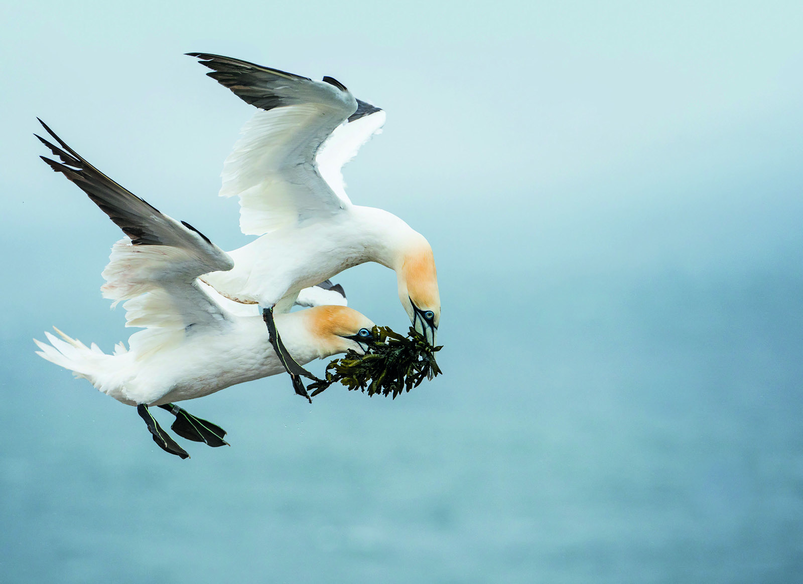 I went to photograph the Northern Gannet birds on the island of Heligoland, Germany, in April because that’s when they’re building their nests and it’s a beautiful, natural process. Sometimes people think that every shot has already been seen, that there’s nothing new. But that’s not true. That day I captured a photo of something neither I nor anyone I’ve met has ever seen before — midair seaweed theft. Right in front of my eyes one bird swooped down and plucked the seaweed directly from the beak of another. It was incredible to see and to capture in a photo.