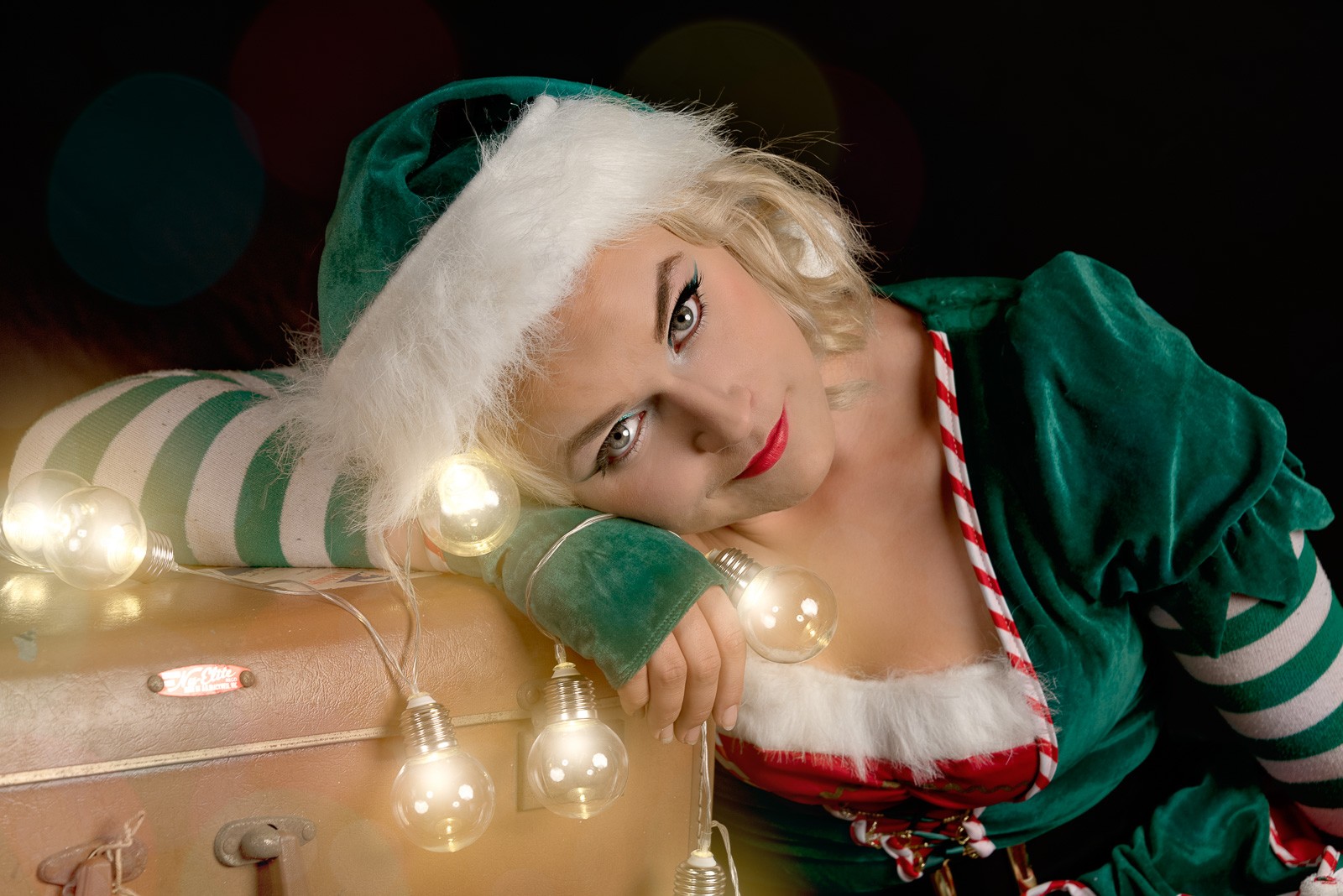 Who says Christmas portraits have to be posed and old fashioned? Try having some fun with yours this year. Grab a friend or two, or perhaps a selfie, and combine that with a Christmas hat and some Christmas lights. No need to go overboard.