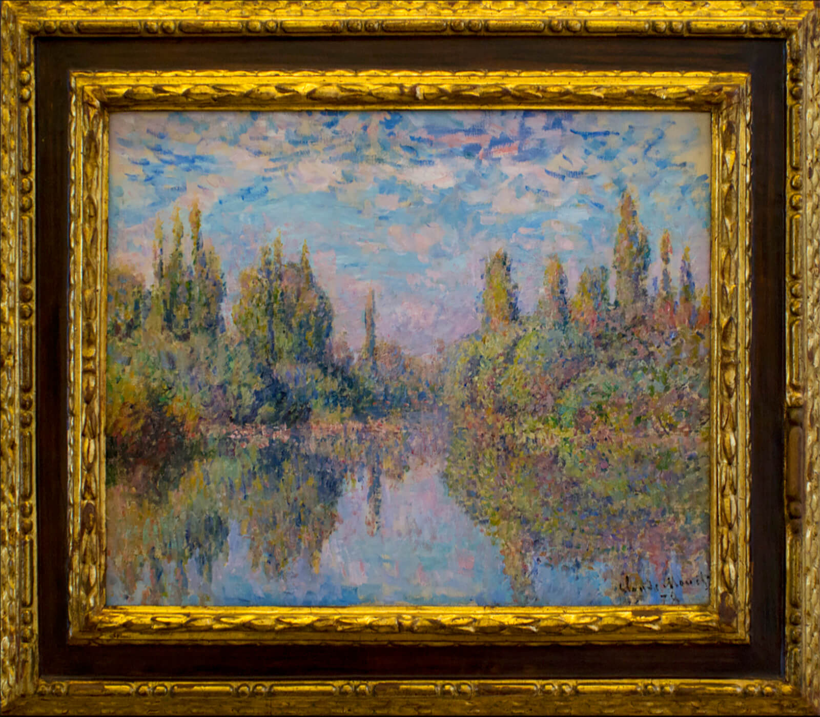 While I am studying the art, I make reference photos. I take an overall image including the frame. One is made inside the frame making the art as large as possible. I capture the information tag as well so I know the artist and the story of the art. Finally, I photograph finite details of the paint strokes and colors. These can be a reference of color palettes with which to play or as textures when using blend modes in my Photoshop layers. These of course, are manipulated quite a bit as well.