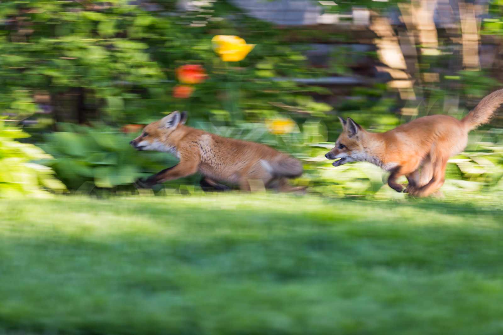 For me, it still works, still shows their motion and playfulness. Will I be printing this or posting it up for stock or framing? No. It’s still a fun shot to look at and brings back all the memories of our little family of foxes we had last spring.