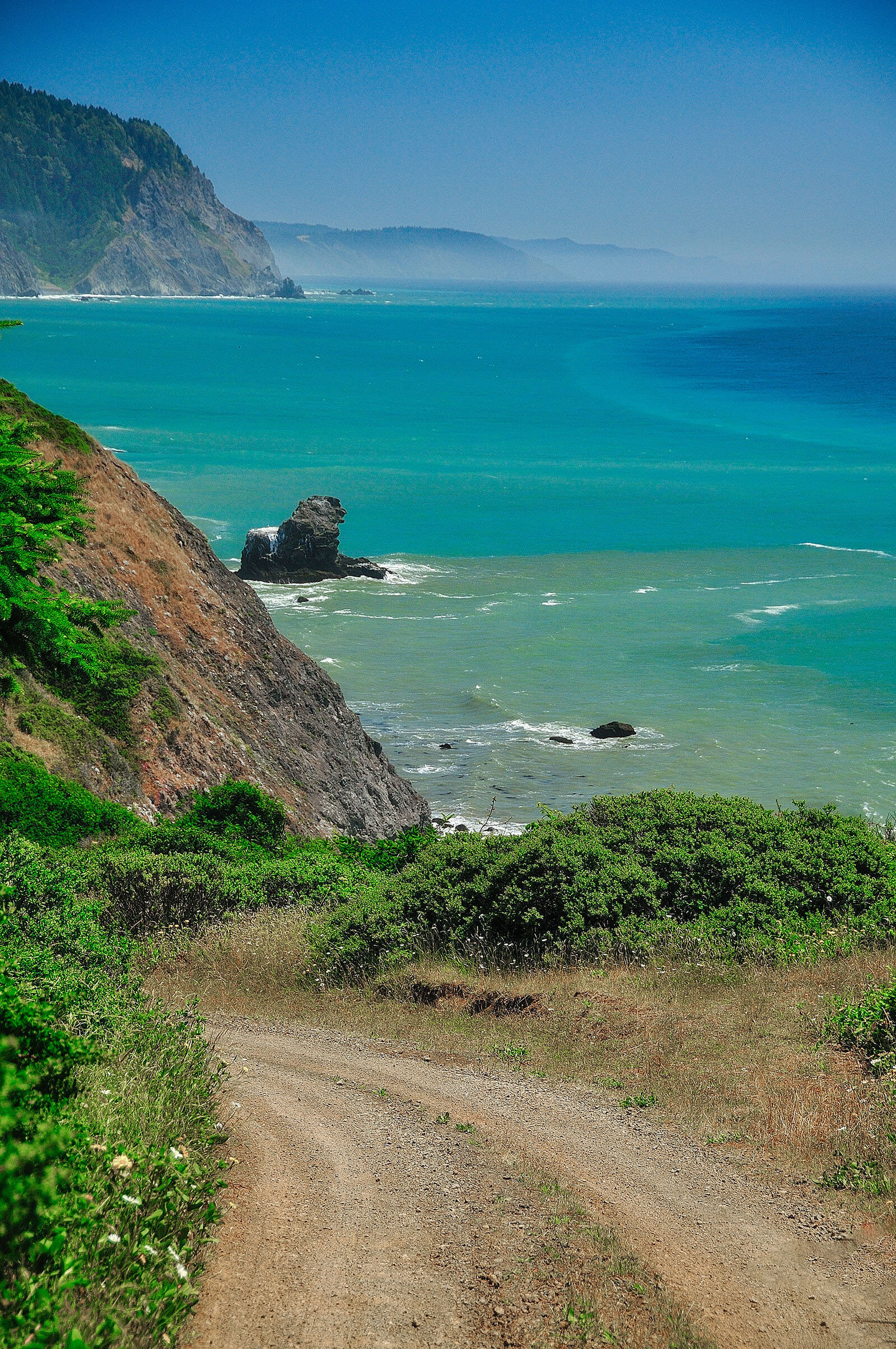 Weave along narrow, winding, twisting dirt bumpy roads with hairpin turns going through forests and rocky cliff areas. Untamed wilderness. More so now, anyway. The Lost Coast had almost been ruined by logging redwoods in the late 1800s. Eventually, state and national parks purchased it from the logging company.