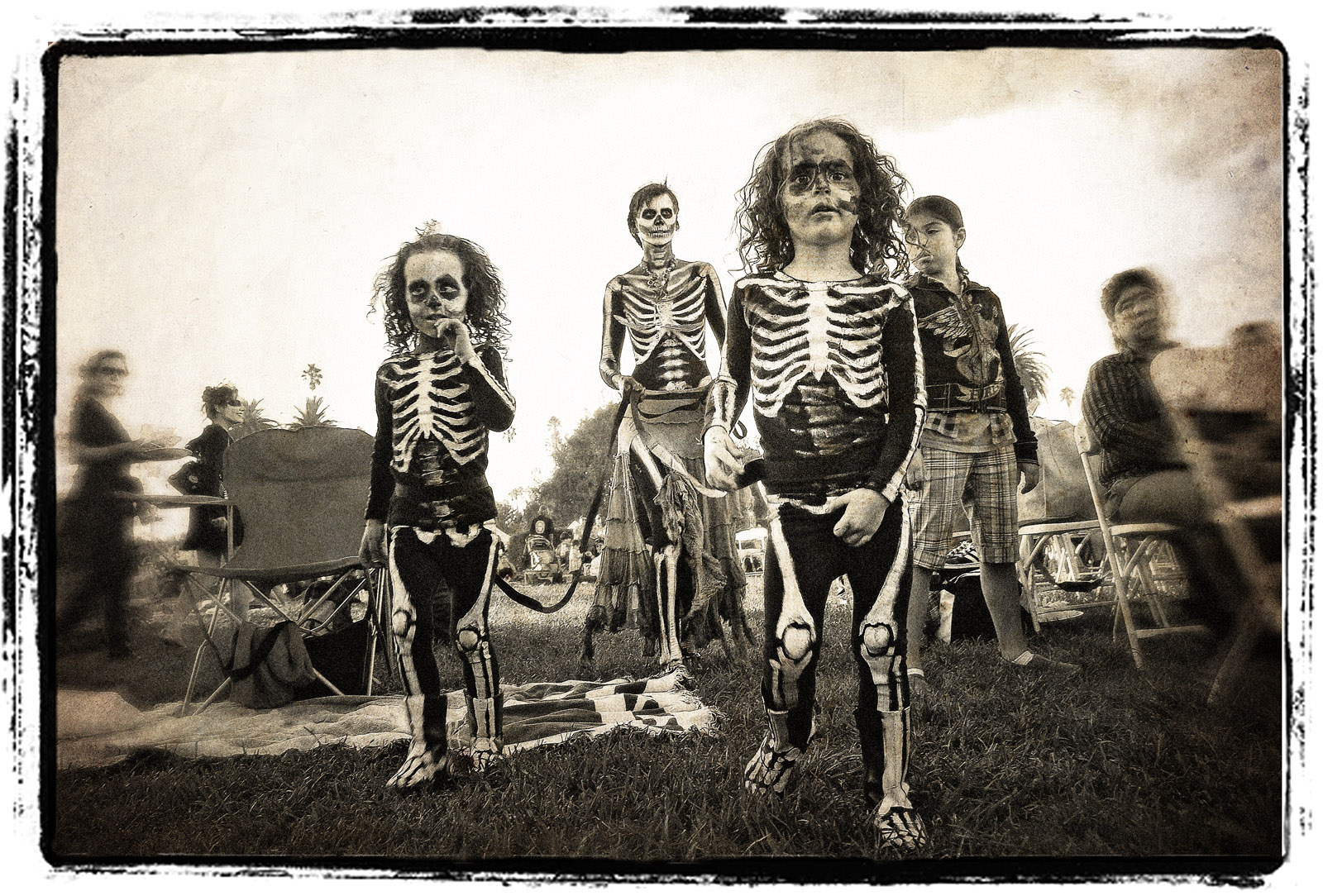 I personally love photographing people. People are happy to pose for photos. Even if you are shy about approaching people, this is one event where you can cast that aside. But certainly, the altars, marigolds, sugar skulls, flags, skeletons, dancing, musical performances, art, graphics and more will appeal to all but the most jaded photographer. Give your children some cameras and watch them have fun for hours.