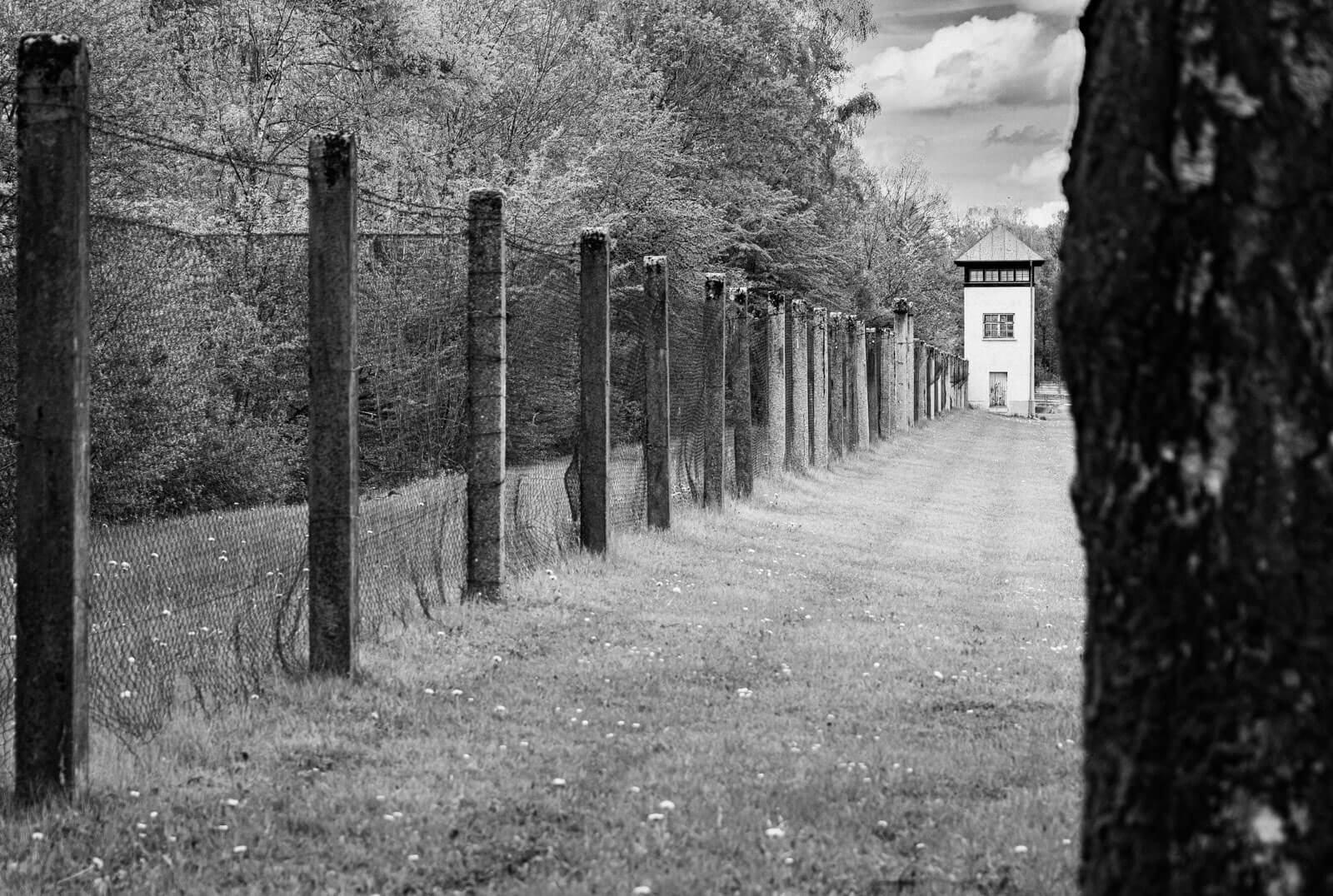 Concentration camp inmates were surrounded by fencing and guard towers. The towers are a stark reminder of the impossibility of escape.