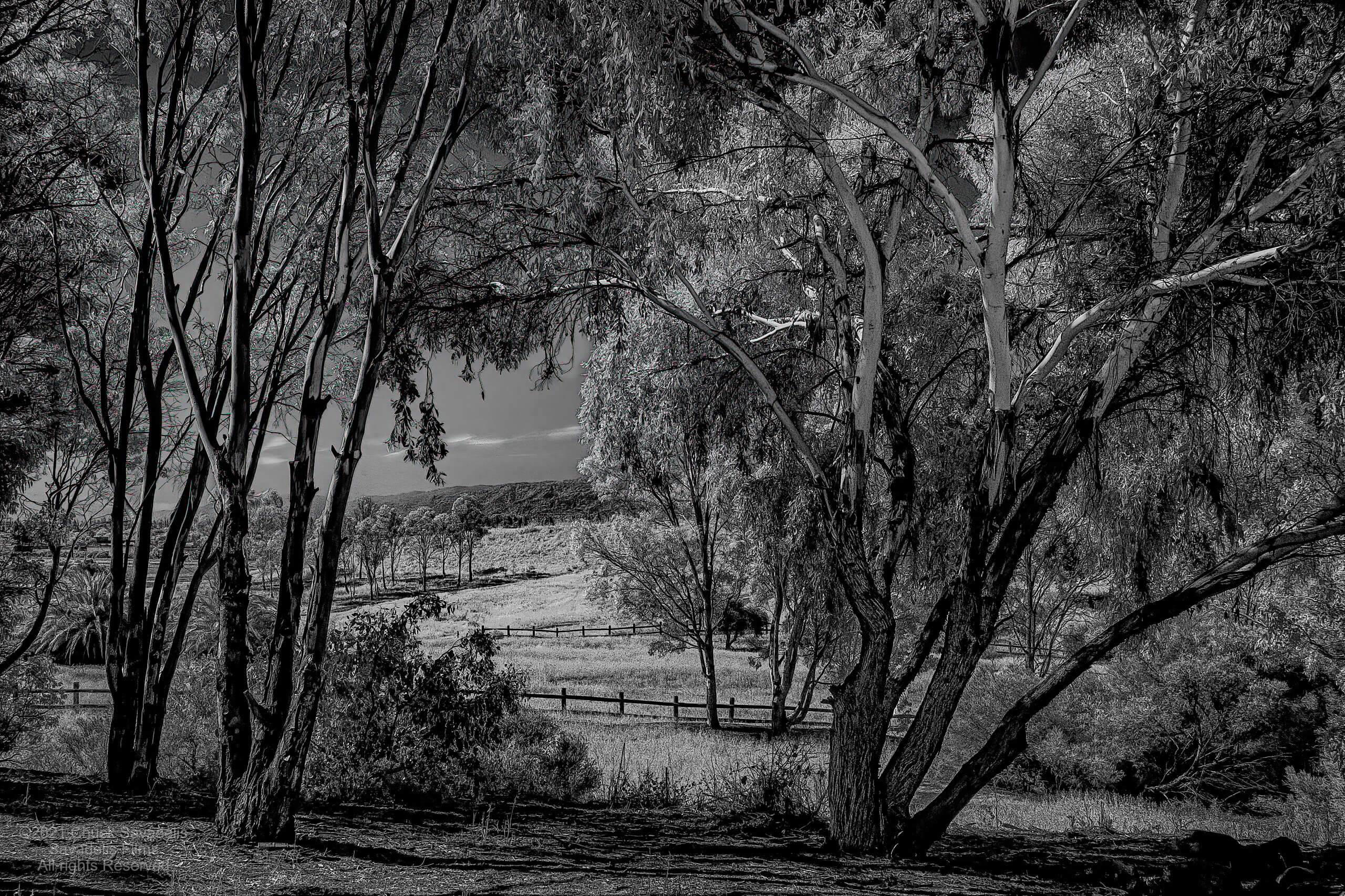 He describes this image as a classic landscape composition with the tonalities of infrared imaging gently applied. Typical of his current work, in that he likes to photograph the people and places of his community in ways that are novel to him. Even after 45 years as an image-maker.