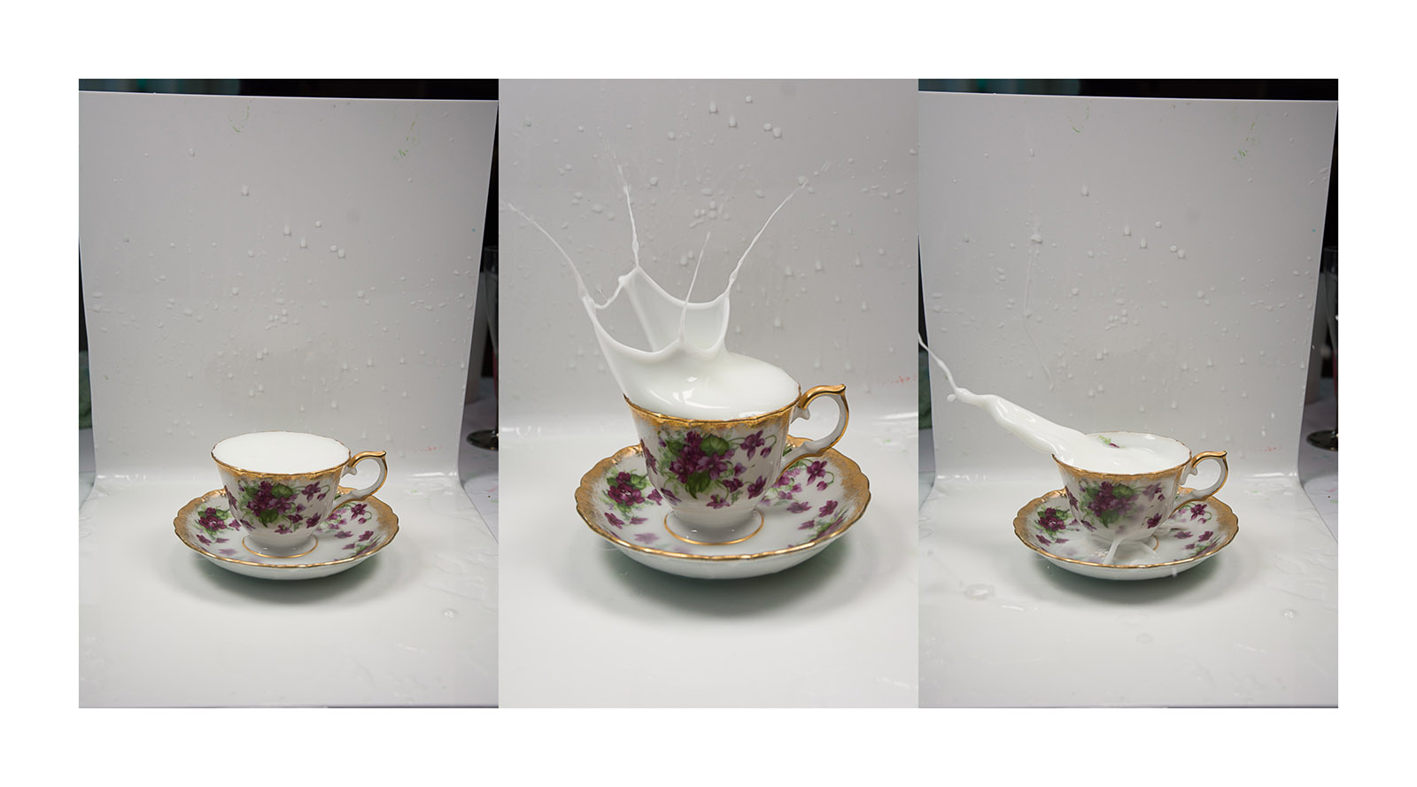 This is loads of fun and there are different variations to try. Grab a teacup and saucer, and mix some cornflour into some milk (to thicken it up a bit). Fill the teacup to the top, then drop ice cubes into the cup and capture the action with your camera.