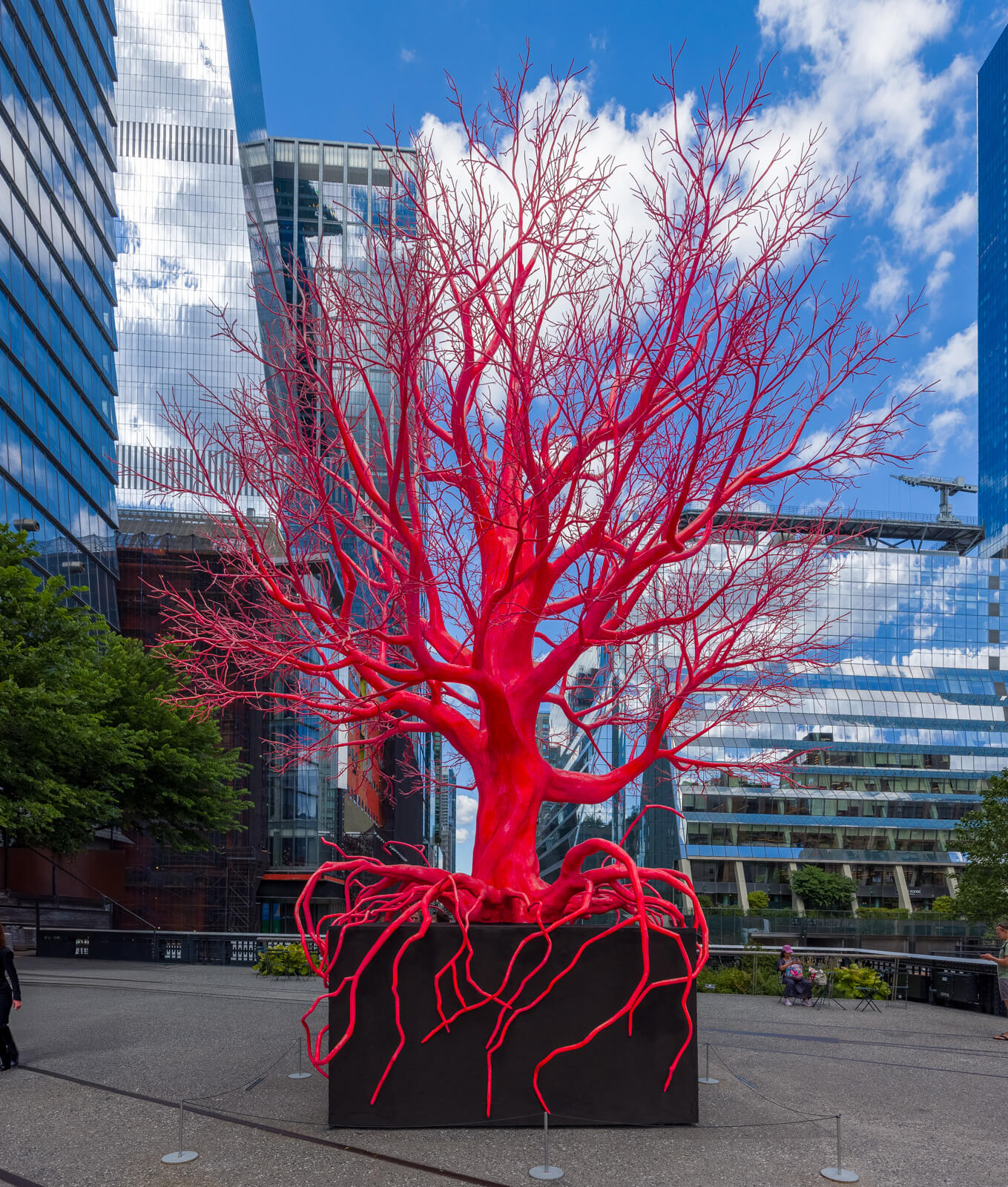 On the newly opened High Line Spur, at 30th and 10th Avenue, stands the Plinth. Rotating exhibits are featured at this location. I photographed “Old Tree” by artist Pamela Rosenkranz during my visit. It’s on display until the Fall of 2024.