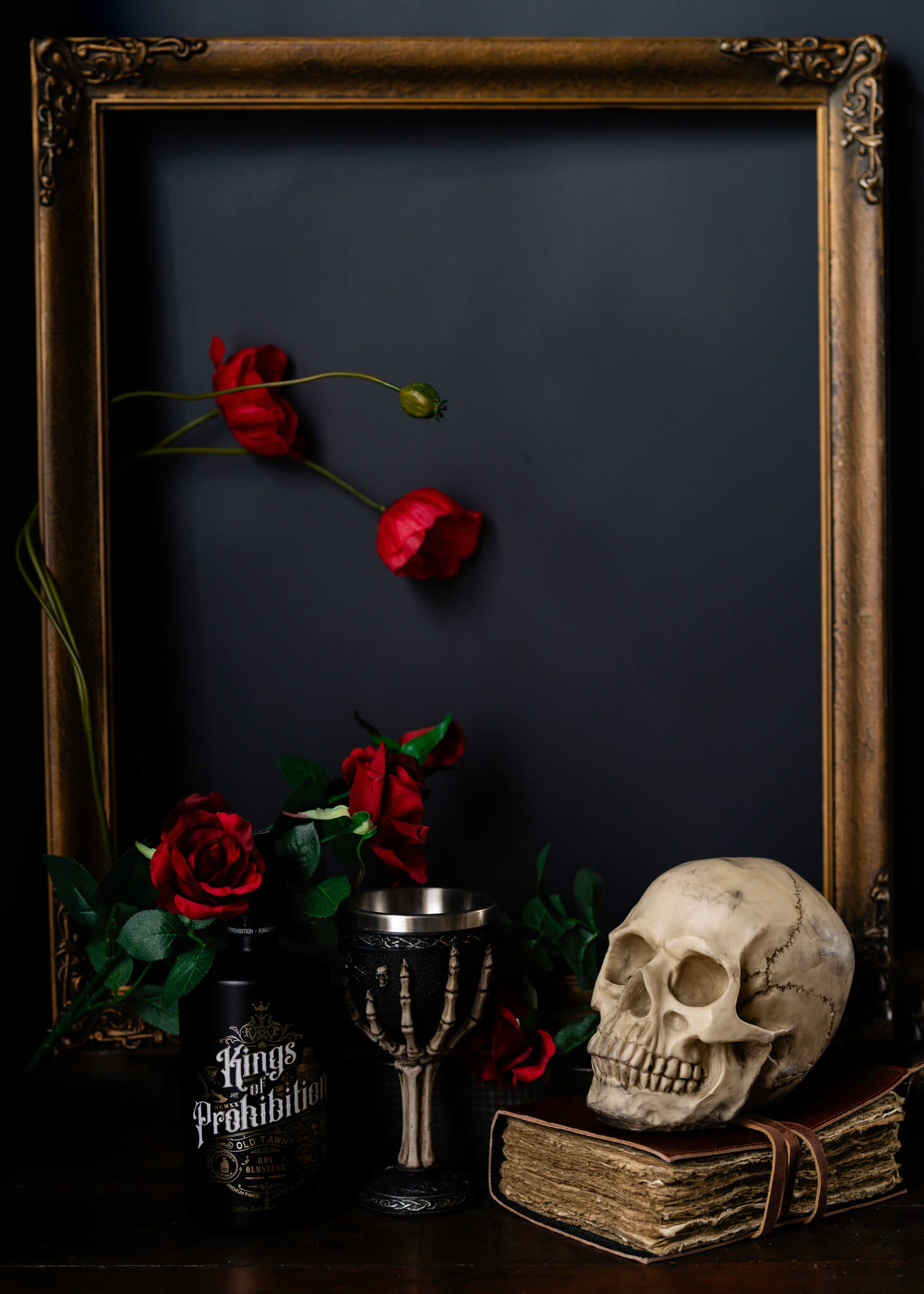 - Port Wine: The dark, elegant bottle of Kings of Prohibition port wine anchors the composition, representing both luxury and a moment of pause — an indulgence before the inevitable.