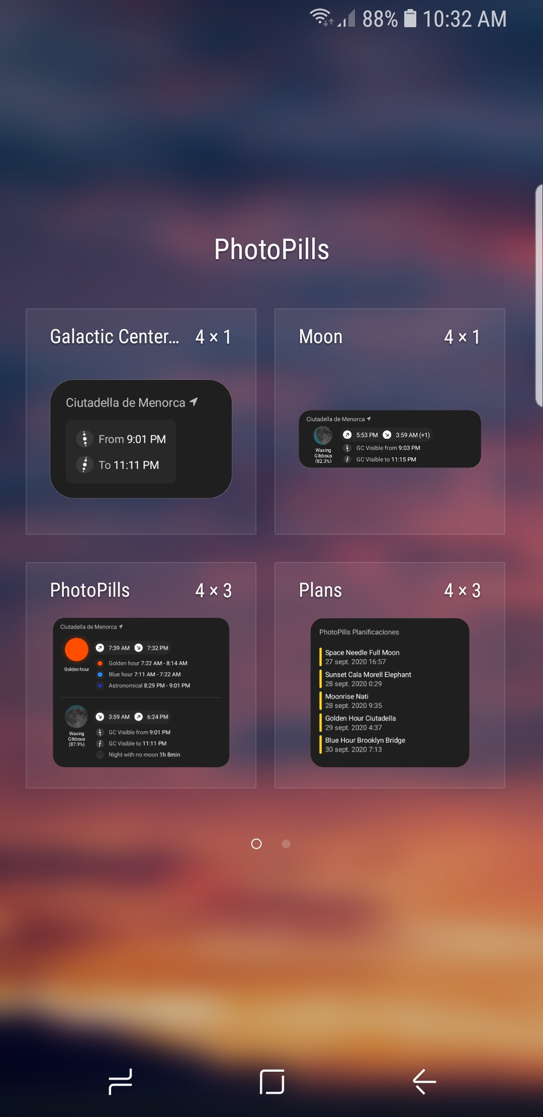 If you have the PhotoPills app already installed, swipe until you see the PhotoPills widgets appear. You’ll have five options to choose from depending on your personal needs. I’ve chosen the most comprehensive one which shows the most information.