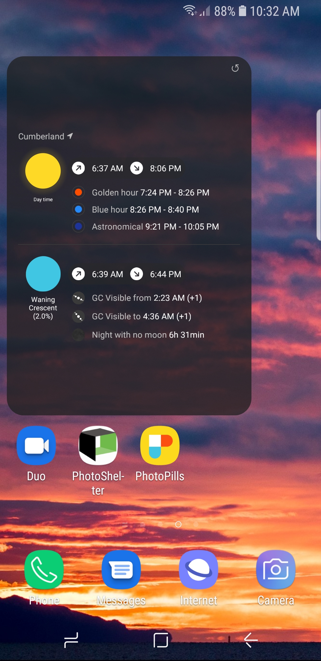The top half of the widget displays daytime information such as sunrise and sunset times, along with all of the golden, blue and astronomical hours, down to the precise minute for your chosen location. I use this constantly at night when I’m about to set my alarm for the next morning’s photo adventures. Being able to grab every last second of sleep while knowing exactly what time I want to be on location is super helpful.