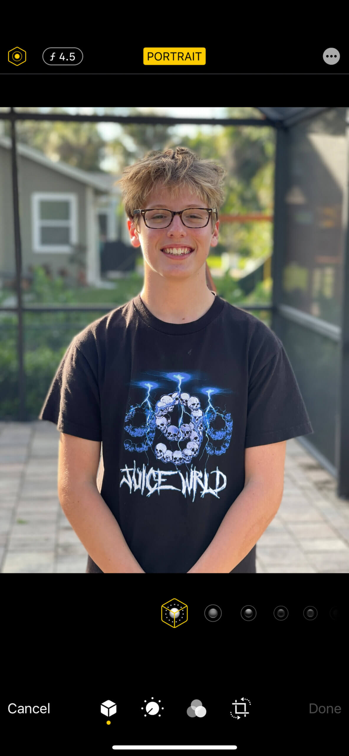 You can see on the camera right side of his neck, the computational algorithm can’t differentiate between where is neck ends and the background begins. This wouldn’t happen with actual optics, but you can see that by using Portrait Mode and adjusting the aperture after you take the photo can be useful.