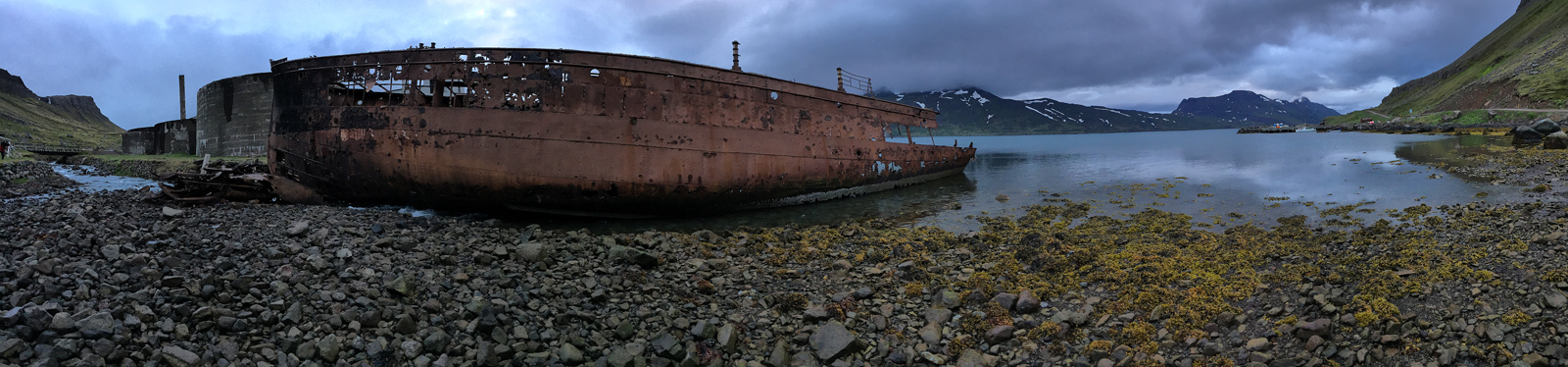 Fun, right? A pano captures the immense scale of this rusting fishing ship and the beauty of the Icelandic mountains and water.