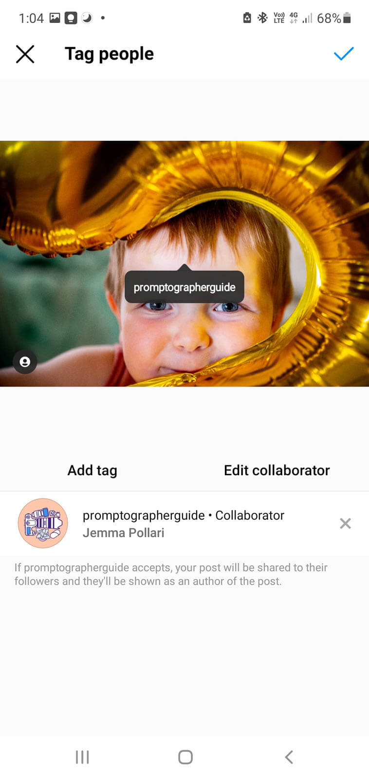 Your collaborator will now get an invitation to accept your post as a Collab, and if they accept, it’ll be shared to both yours and their followers.