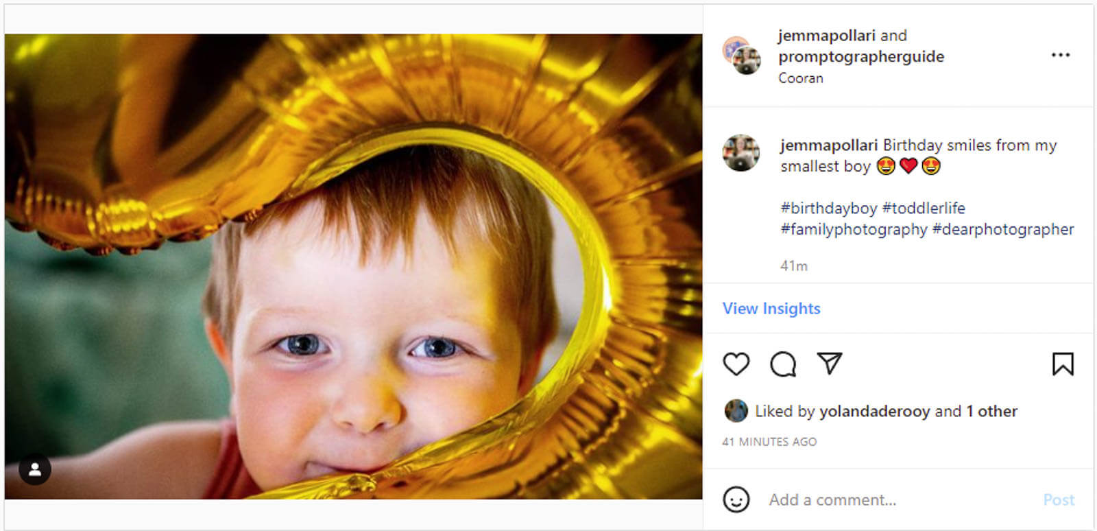 You could also use it (as I have done in my example here) to share a post with your blog or business account, from your personal account. Loyal fans who follow both accounts won’t get double-ups.