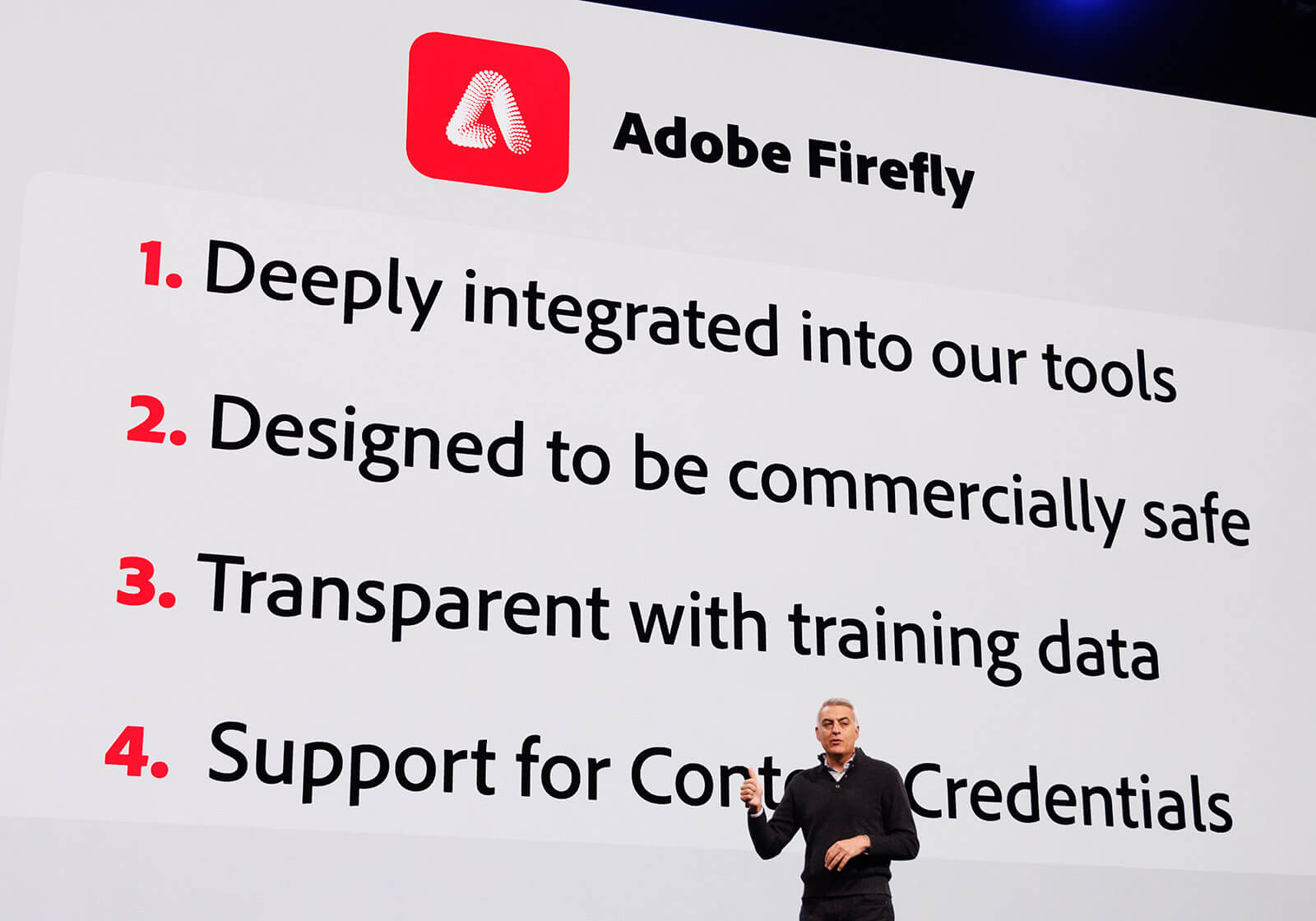The discussion moved on to Adobe Firefly, its development and how the creator community was involved.