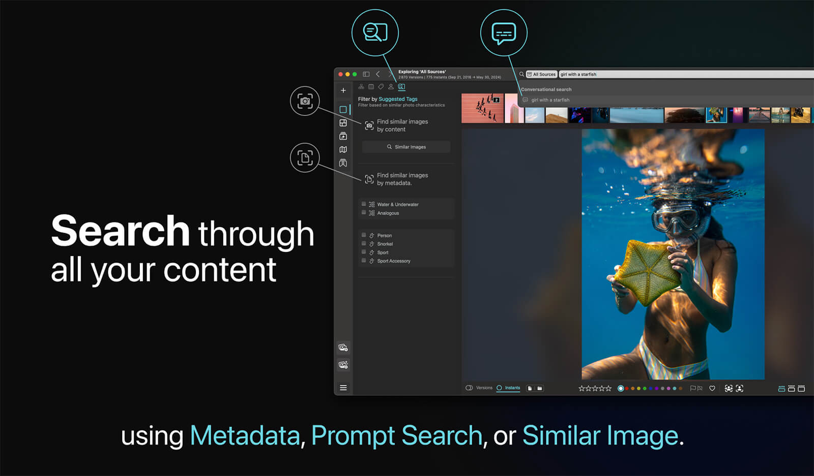 - Comprehensive Global Search: Effortlessly locate photos and videos across all catalogs and files.