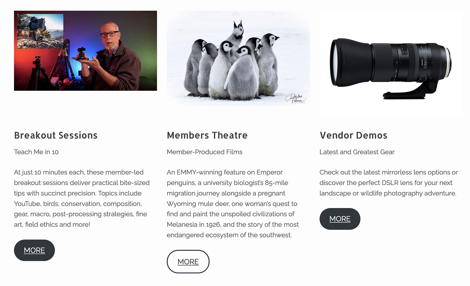 Additional programming will be available in the form of 10-minute programs called “Teach Me in 10,” covering various subjects. I put together a 10-minute program on creative uses of different kinds of camera supports — steadying your camera on a tripod can help secure better nature images. I couldn’t believe how much info I was able to pack into 10 minutes!