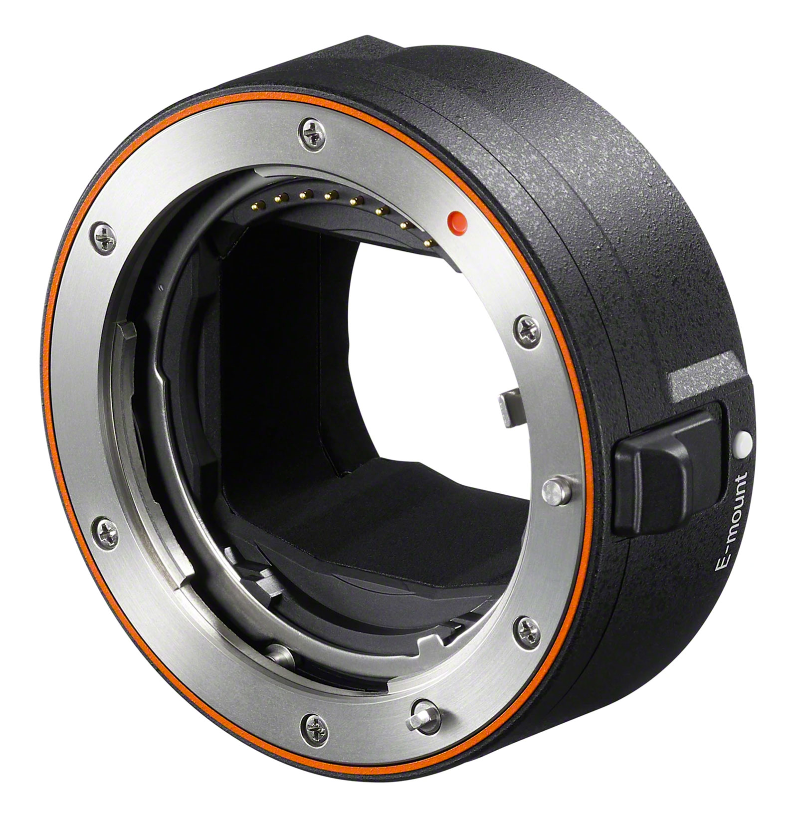 The adapter has been redesigned to match the diameter of the A-mount, making for a flush alignment with the edges of the lens mount. It improves upon Sony’s previous A-mount adapters, the LA-EA3 and LA-EA4, and features the external mechanism for screw-drive motors inside the adapter ring.