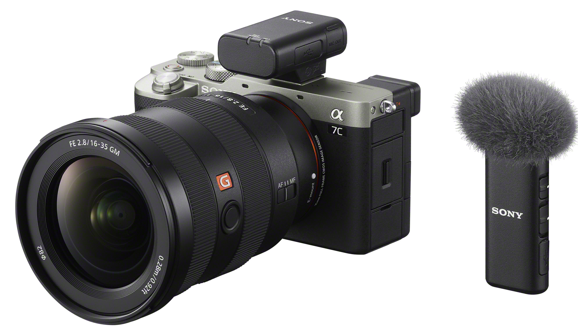 The ECM-W2BT wireless microphone enables low-noise digital sound recording by connecting the receiver to a camera equipped with a digital audio interface compatible Multi Interface Shoe. The digital audio signal output from the receiver can be recorded directly on the camera body without wiring an external audio cable.