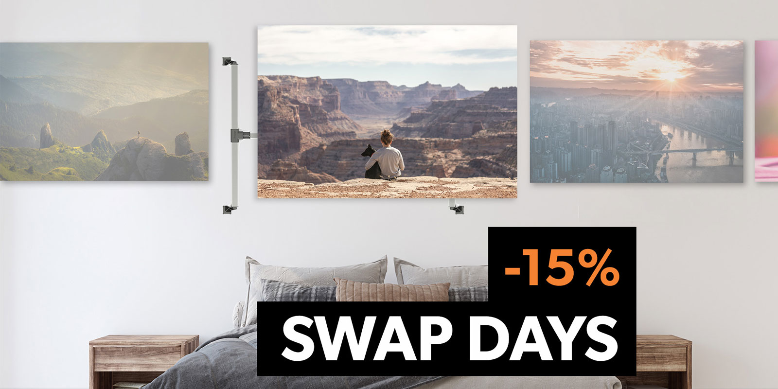 Have a winter scene on the wall that’s starting to make you freeze? Replace it with a sunny beach photo. Or do you want to swap out that engagement photo for a wedding photo you love? Replace it quickly and easily.
