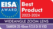 Aug. 14, 2023, Commack, NY — Tamron announces the presentation by the Expert Imaging and Sound Association (EISA) of its EISA Awards to two Tamron lenses: 20-40mm F/2.8 Di III VXD (Model A062) for EISA WIDEANGLE ZOOM LENS 2023-2024 and 50-400mm F/4.5-6.3 Di III VC VXD (Model A067) for EISA TELEPHOTO ZOOM LENS 2023-2024.