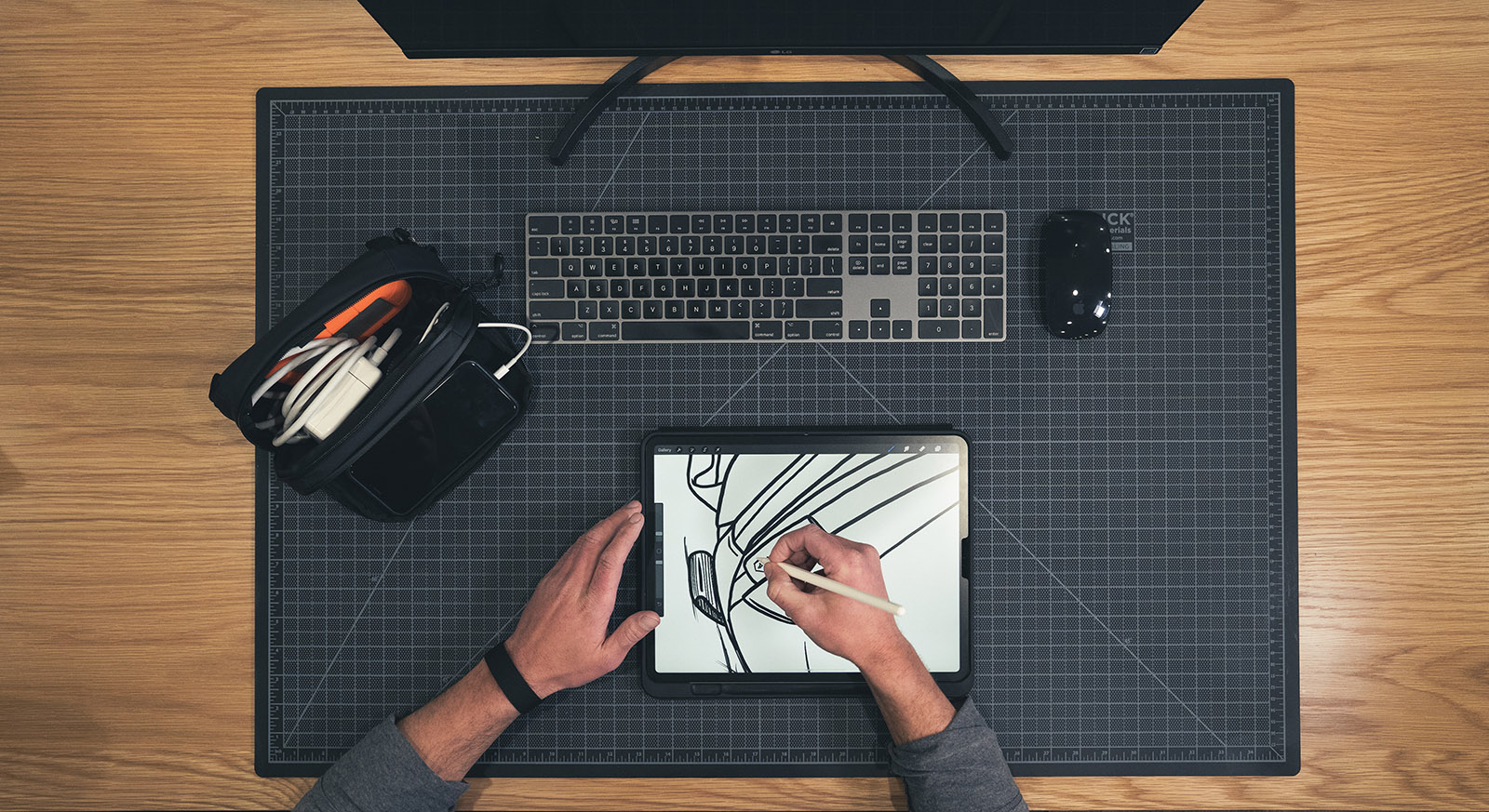 The Tech Pouch comes in three sizes, with the smallest being able to lay flat.