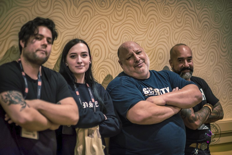 She networked with a few fellow attendees and hung out with them throughout the conference. The group went to Midnight Madness, a social event at Photoshop World. As luck would have it, I met her and the group standing against a wall all dressed in black.