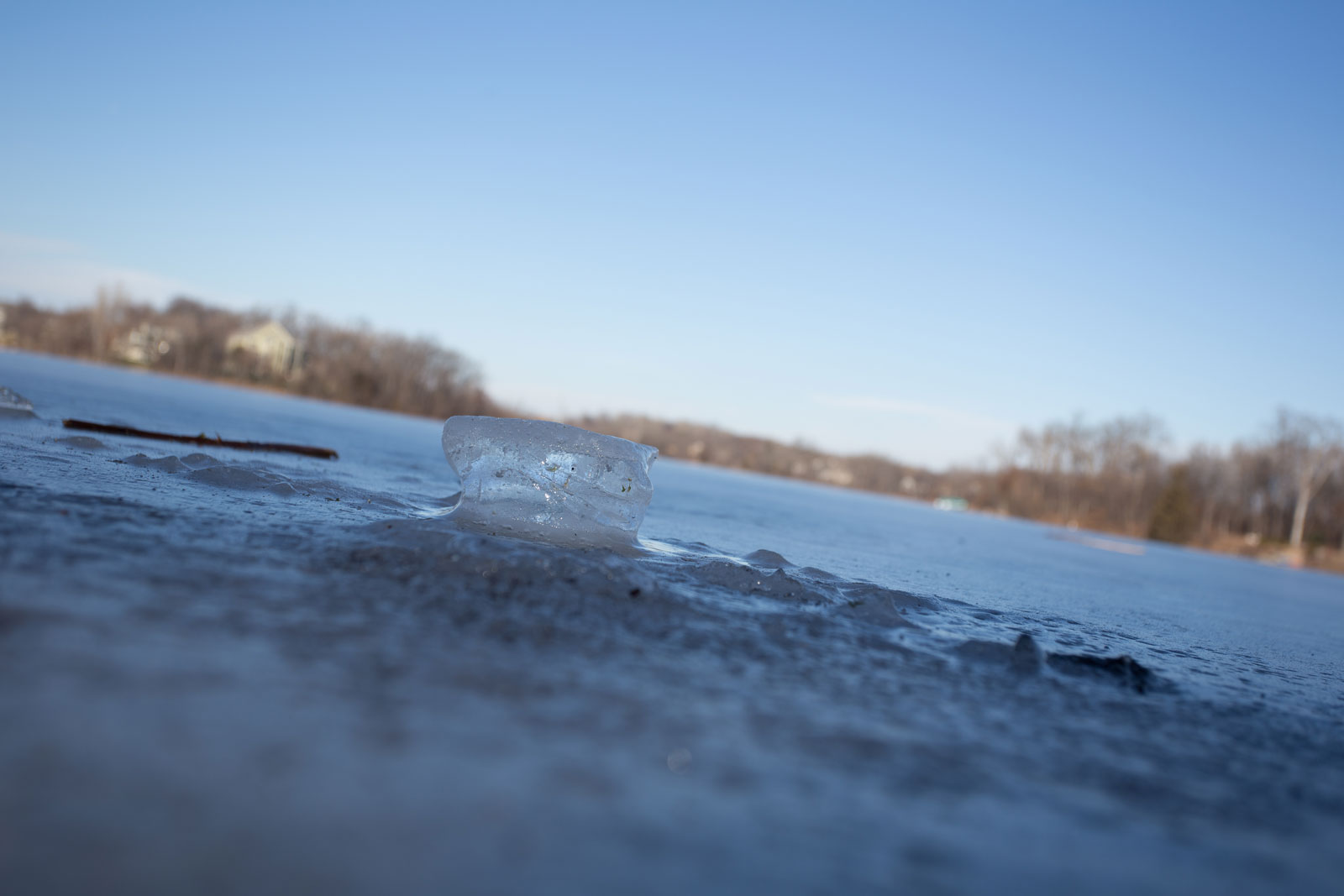 The story though in this photograph isn’t the shoreline or even the lake. It’s that little chunk of ice that popped up and froze on the surface. So, eliminate anything that distracts from your story.