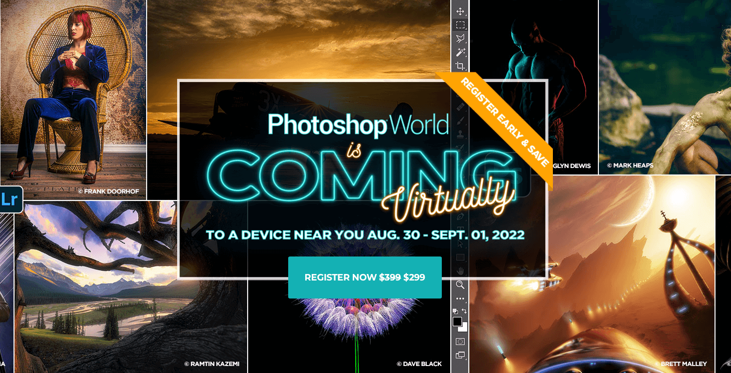 From Aug. 30-Sept. 1, 2022, join the world’s leading Photoshop instructors as they teach you how to push your Photoshop skills to the next level at the all-virtual Photoshop World!