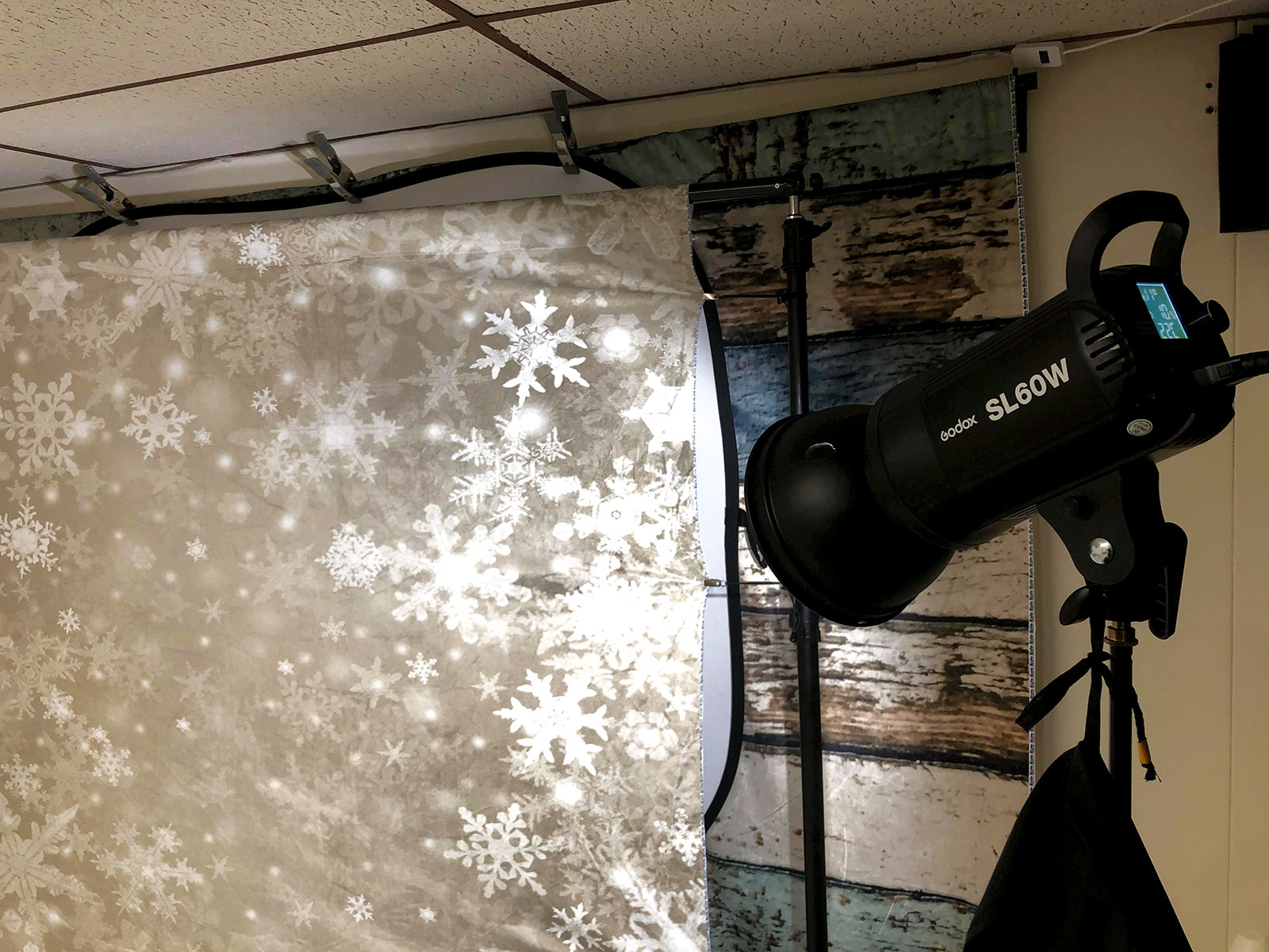 For corporate portraits I have a faux gray and a faux blue collapsible backdrop. This is also available as a green screen, white, black and several other patterns. $170.99; available via B&H.