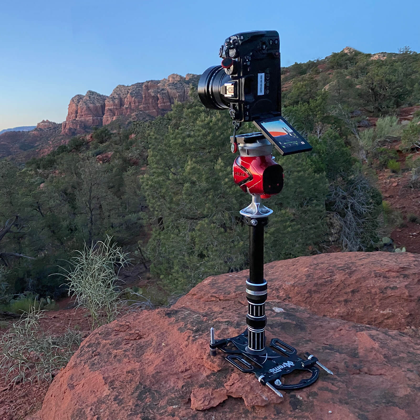 Many times when making star trails I will work with a second camera. My main camera is mounted on my main tripod and is devoted to Milky Way captures. I have no wish to carry two tripods out into the field. Then it’s Platypod to the rescue. I use the Platypod eXtreme as a base. If I need just a bit more height I add the Platypod Handle which together weigh under 2 and 1/2 pounds. If I switch out to the Benro ball-head it’s under 1 and 1/2 pounds. A small ball-head or the Platyball complete the setup. The whole time I am working on my Milky Way captures the second camera is grabbing the time-lapse of the star trails. The setup takes very little space in my pack as well.
